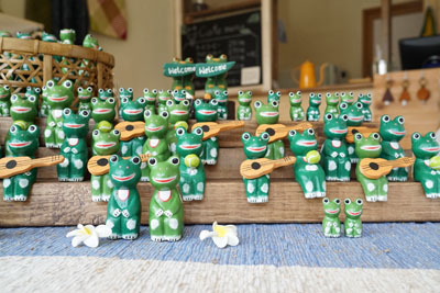バリの職人さんが心を込めて手作りしている木彫りのカエルが揃って